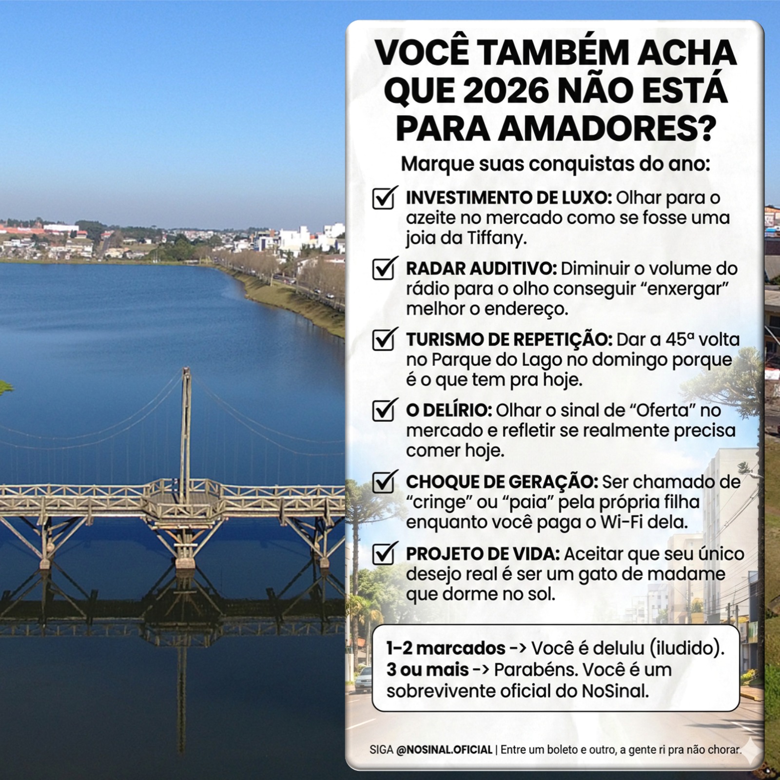 "O diagnóstico que a nossa cidade não pediu, mas todo mundo precisava. 🏥🚦Se você gabaritou esse teste, sinto informar: sua aura está no negativo, mas seu lugar é aqui no NoSinal.